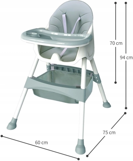 - 3 modes d’utilisation : chaise haute pour l’alimentation, chaise basse avec plateau, chaise basse sans plateau
