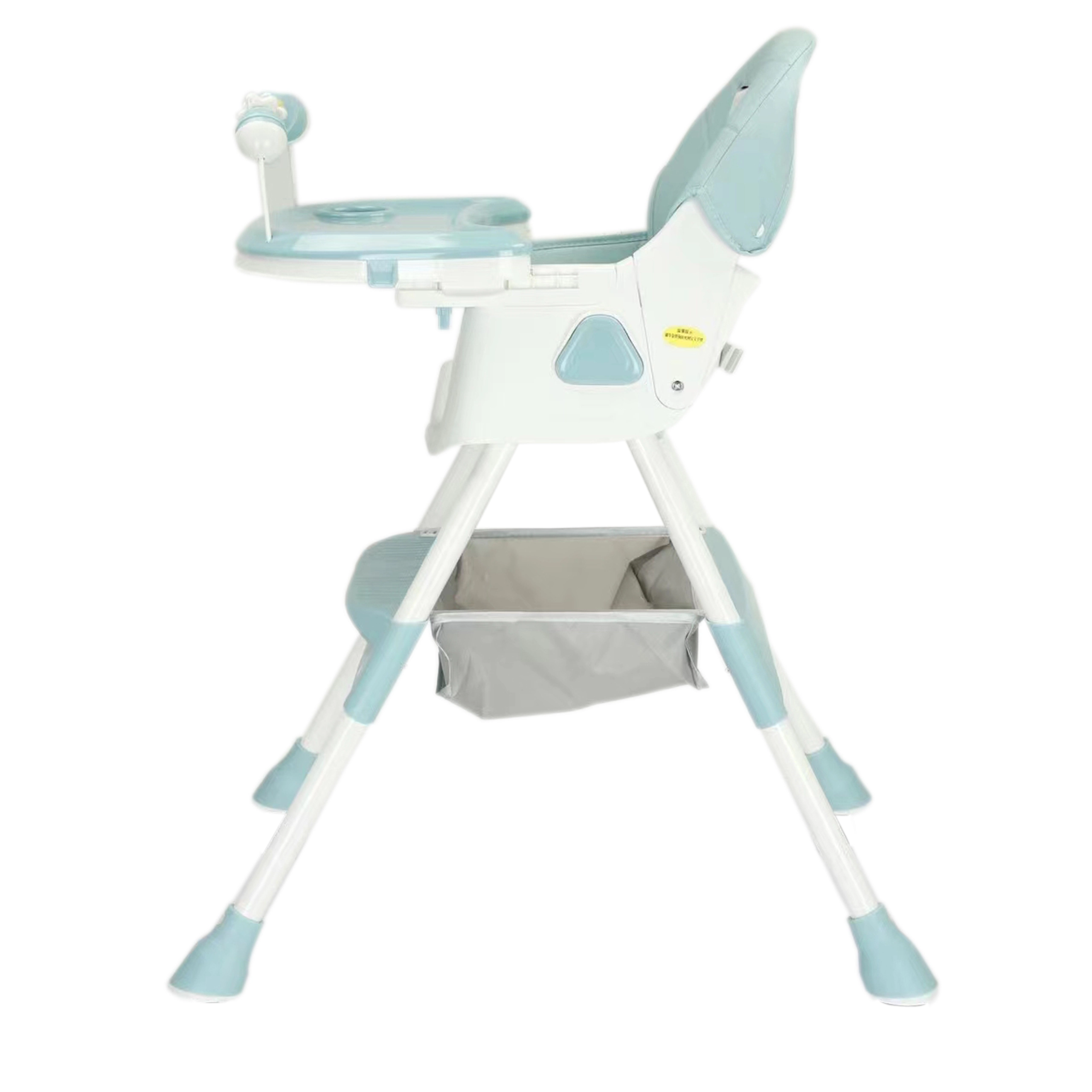 La sécurité est assurée par une ceinture 5 points, une assise profilée avec butée d’entrejambe et des pieds écartés stables dotés d’embouts antidérapants. Le confort est garanti par un rembourrage moelleux, et l’enfant dispose en plus d’un repose-pieds. Un panier de rangement pratique sous l’assise accueille couches, bavoirs et jouets.