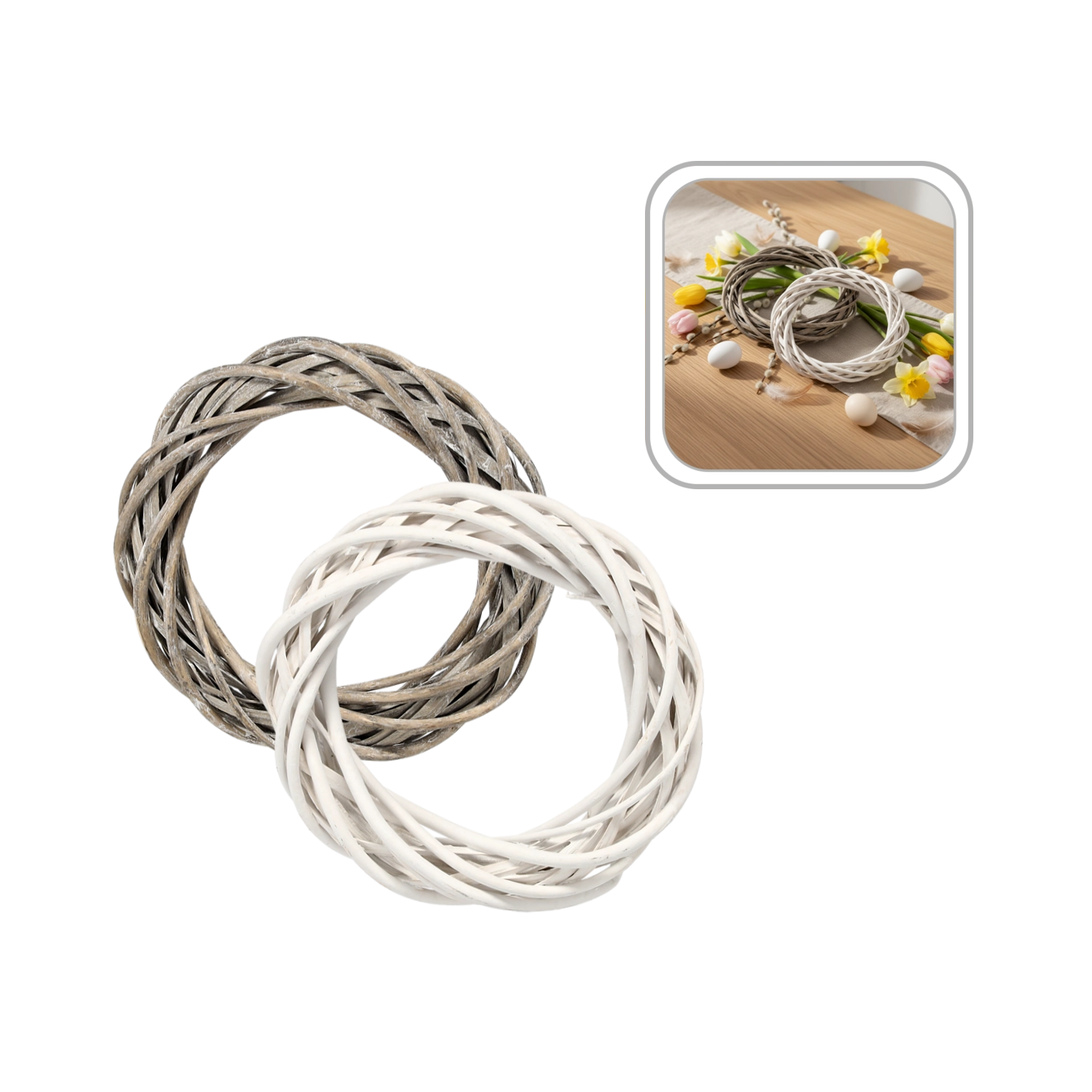 Couronne en osier 20 cm – blanche ou grise