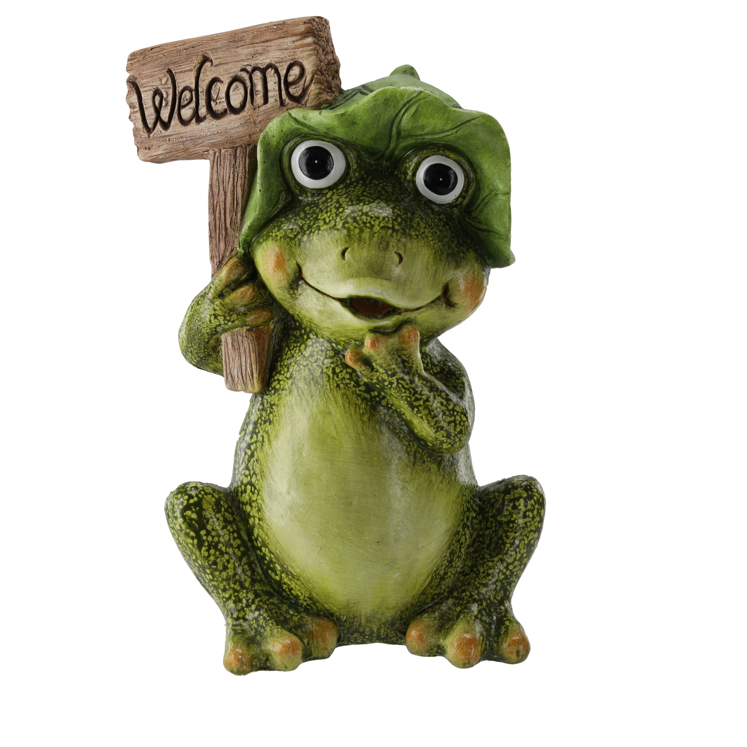 Embellez votre entrée, vos massifs ou votre espace détente avec une décoration charmante – une grenouille assise portant l’inscription d’accueil WELCOME. Une fabrication de qualité avec une texture détaillée et des couleurs marquées en fait un élément incontournable qui ravira vous et vos visiteurs.