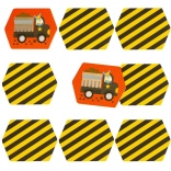 Les cartes hexagonales se distinguent par un fond orange vif et des animaux sur des machines de construction, qui stimulent l'intérêt de l'enfant pour l'apprentissage et la découverte.