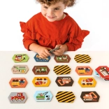 Pexeso Machines de Construction est un jouet adorable et écologique pour les tout-petits qui offre du divertissement tout en développant les capacités mémorielles. Fabriqué à partir de matériaux recyclés et imprimé avec des encres sûres, idéal pour les petites mains.