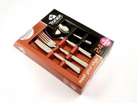 - 6× cuillère à soupe, 6× fourchette, 6× couteau, 6× cuillère à café