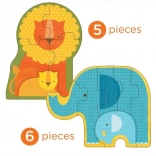 Voici le Petit Collage Premier Puzzle Bébés Safari, le choix idéal pour les petits explorateurs dès 2 ans. Cet ensemble comprend quatre animaux que votre enfant découvrira progressivement sous forme de puzzles plus ou moins difficiles de 3 à 6 pièces.