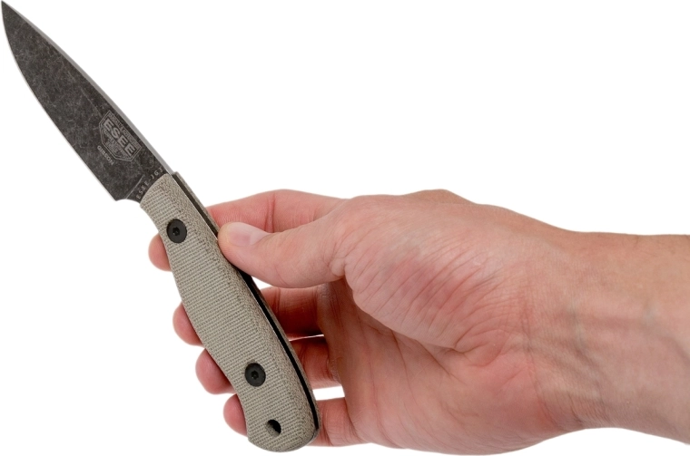 Le modèle ESEE JG3 Camp-Lore, conçu par James Gibson, s’inscrit dans la tradition des couteaux bushcraft et est fait pour le travail quotidien en extérieur. La construction full tang offre une résistance maximale, la lame en acier au carbone 1095 conserve très bien son tranchant et la finition Stonewash Black Oxide aide à protéger contre la corrosion. Pour une longue durée de vie, il est recommandé de garder la lame au sec et de l’huiler de temps en temps.