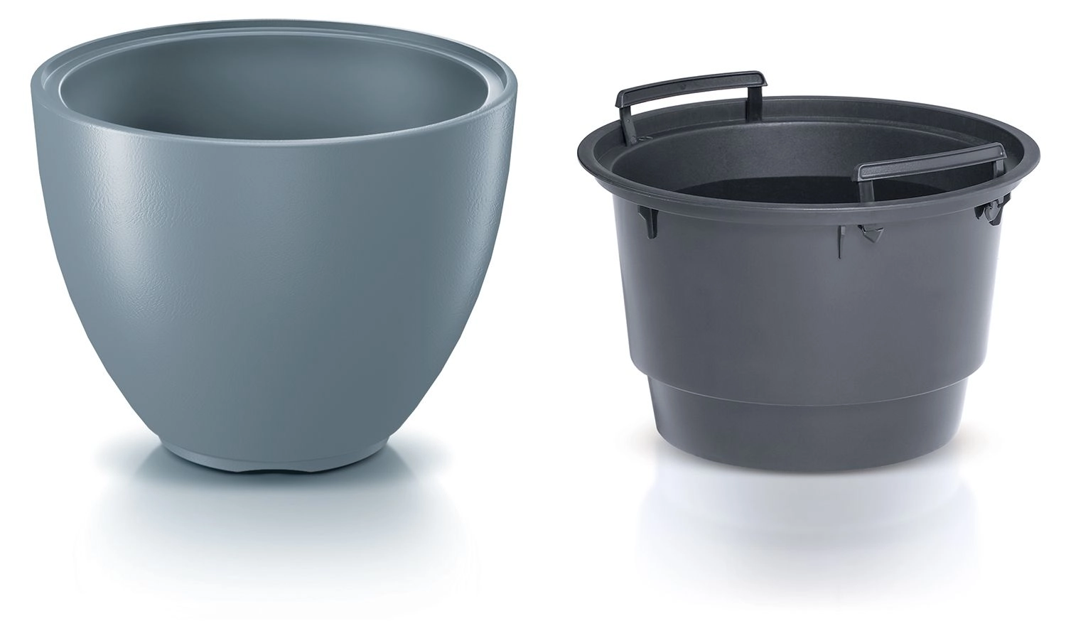 L’insert avec poignées intégrées facilite le transport et l’entretien des plantes. La texture mate de l’enveloppe extérieure résiste aux traces et aux rayures.