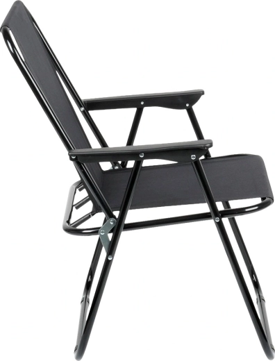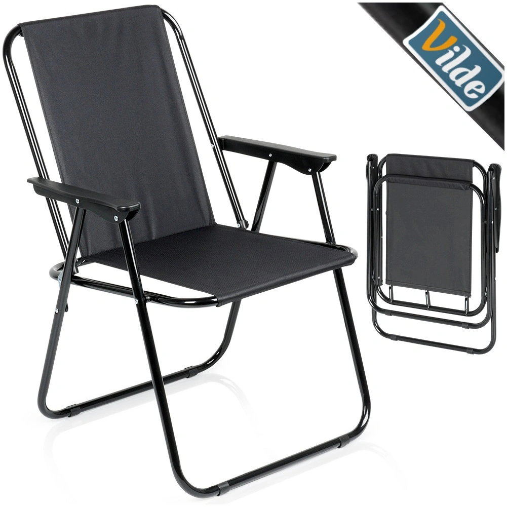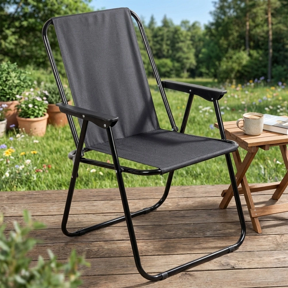 Cette chaise de camping pliante est un compagnon fiable pour chaque aventure en plein air. Le revêtement en polyester résistant de couleur noire et le cadre métallique robuste garantissent une longue durée de vie et une excellente stabilité. Grâce aux accoudoirs, l’assise reste confortable même pendant de plus longues périodes de repos.