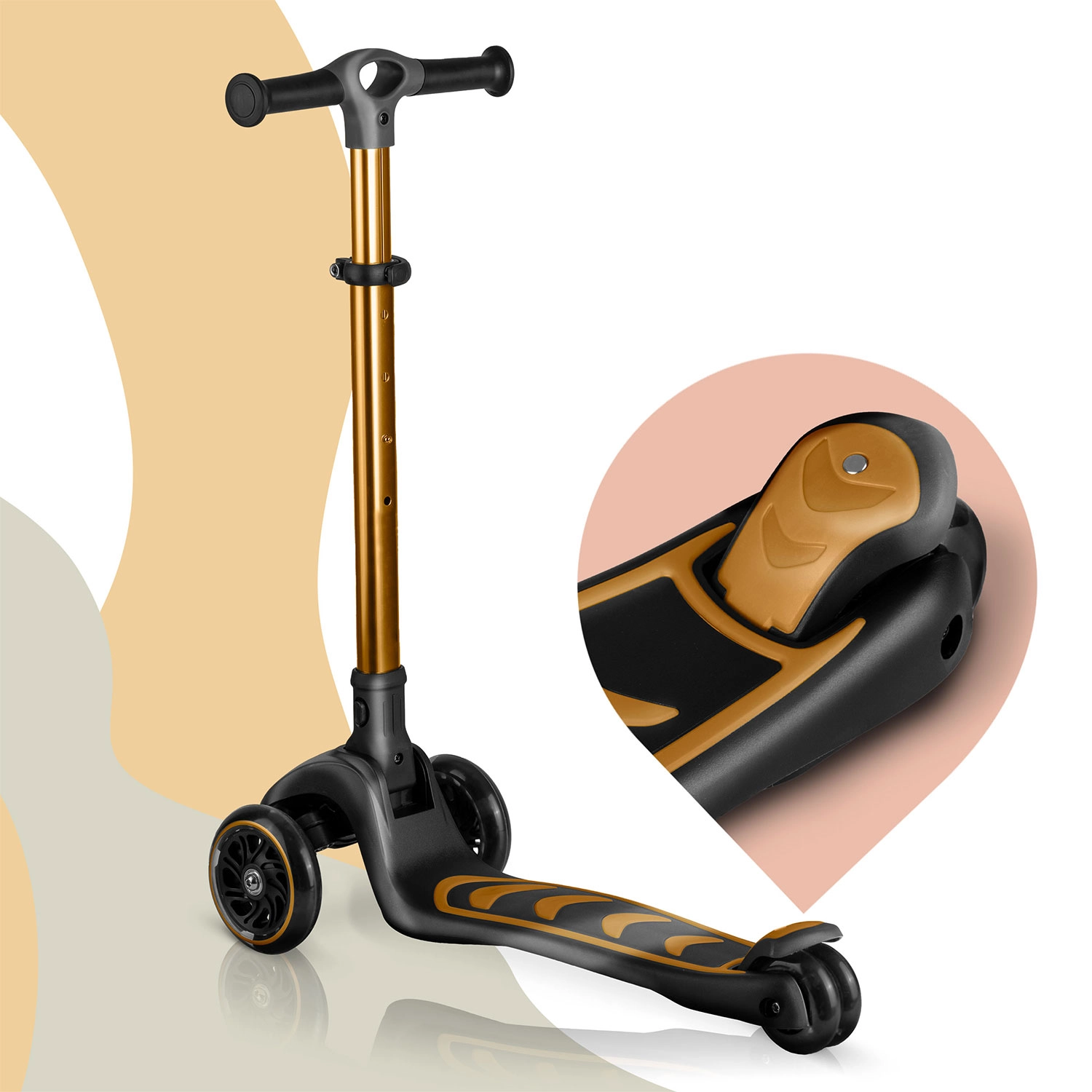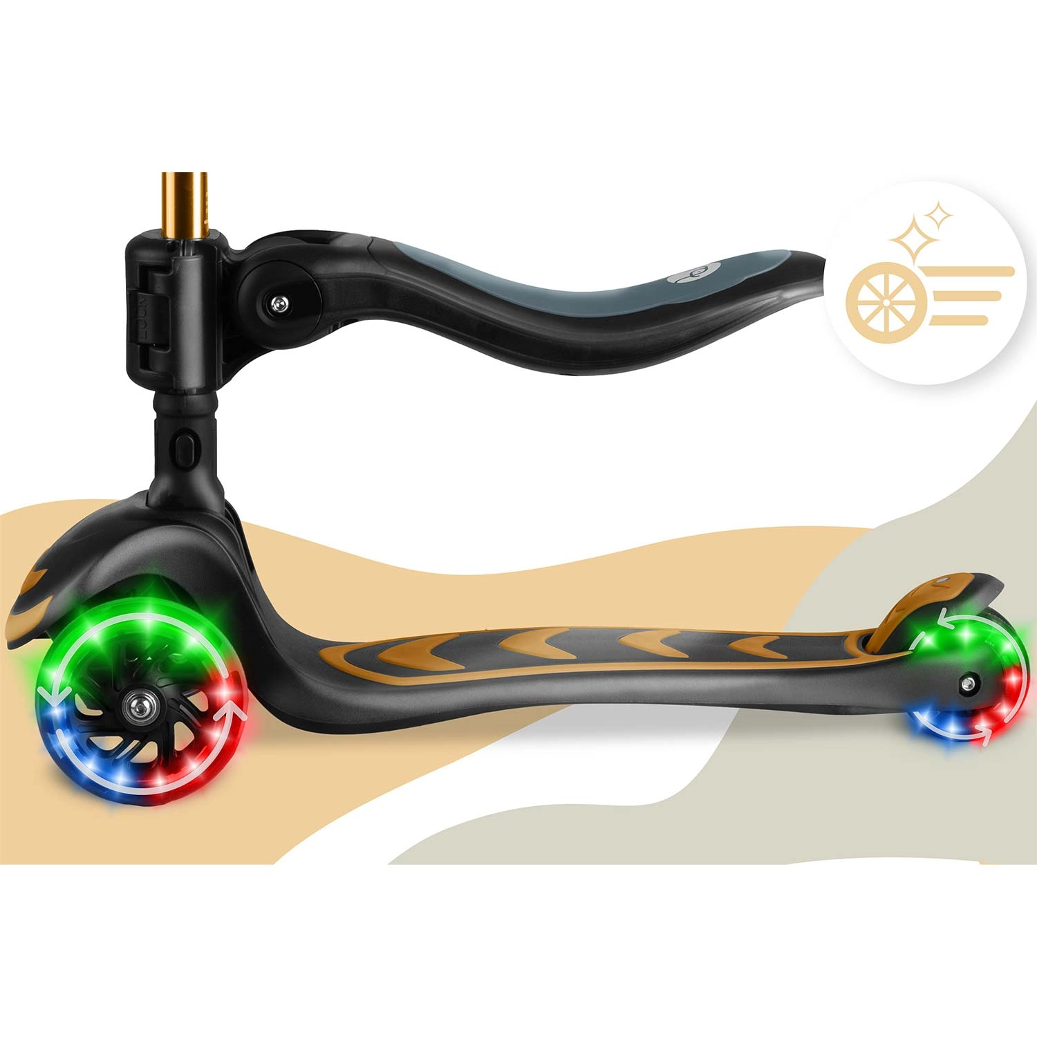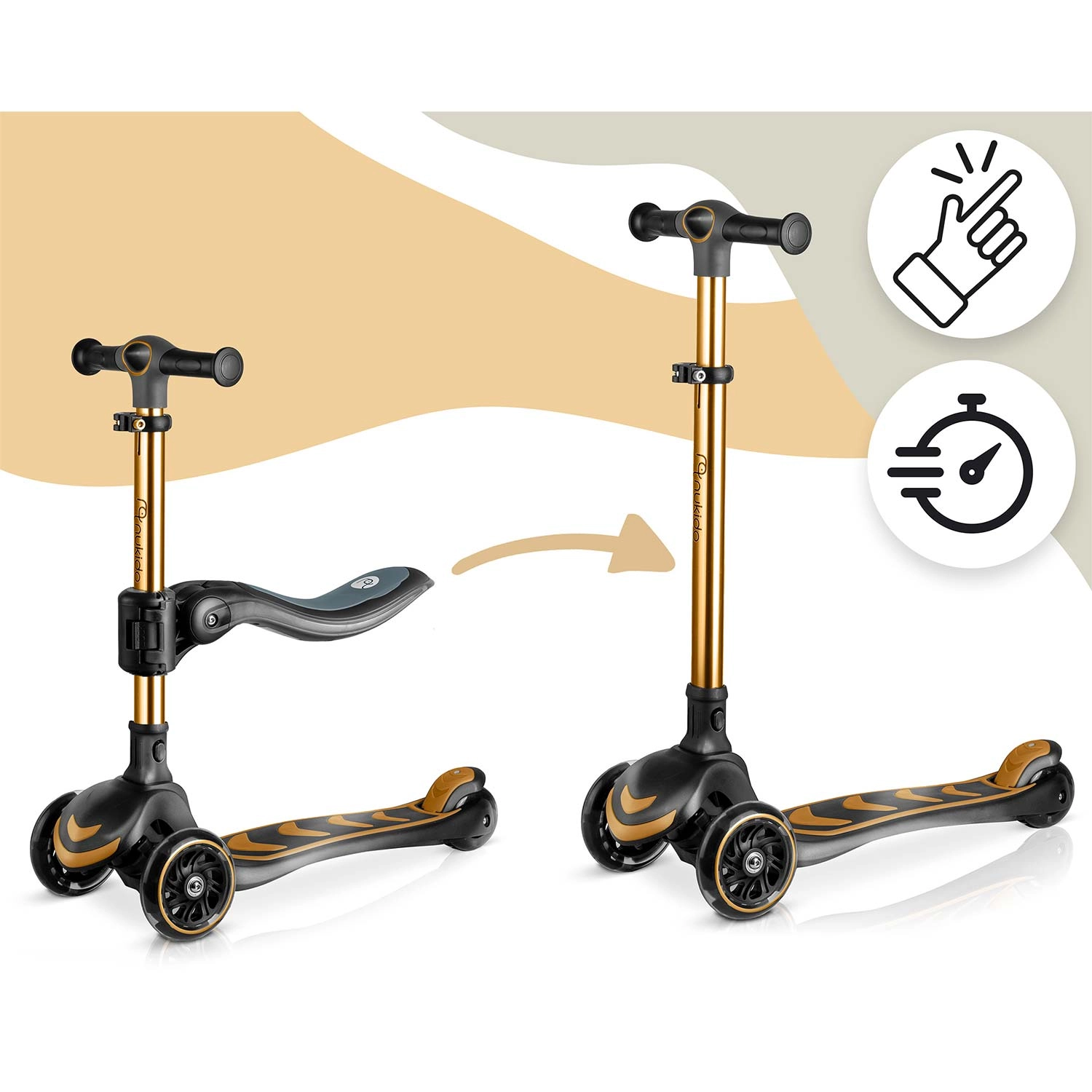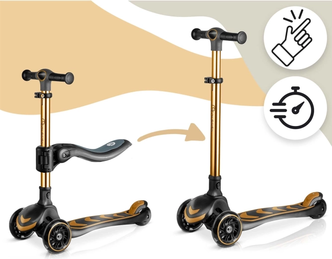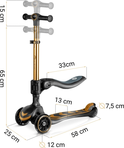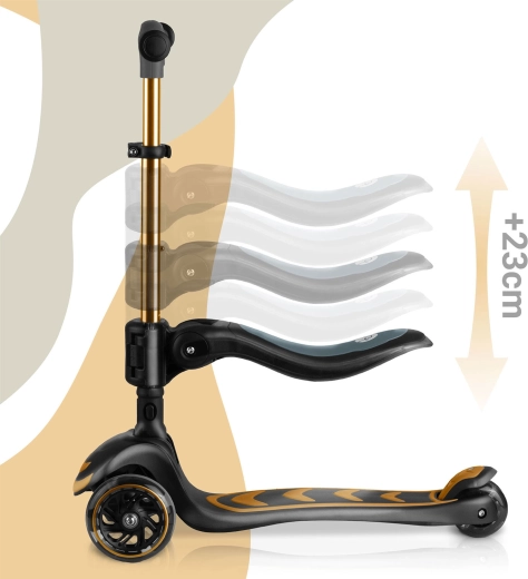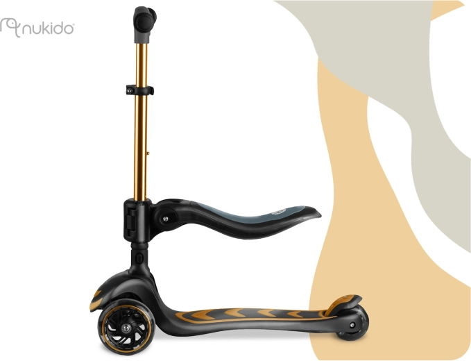 La trottinette d’équilibre à trois roues avec siège NUKIDO Flippo offre une conduite stable et ludique pour les petits riders. Grâce à la direction lean-to-steer, l’enfant tourne intuitivement en inclinant le corps, tandis que le large plateau antidérapant et le frein arrière à pied renforcent la sécurité. Les roues LED s’illuminent en roulant sans piles, et la hauteur réglable du guidon en T ainsi que le siège amovible garantissent une longue durée d’utilisation. La trottinette répond aux normes européennes de sécurité EN71 et supporte jusqu’à 50 kg.