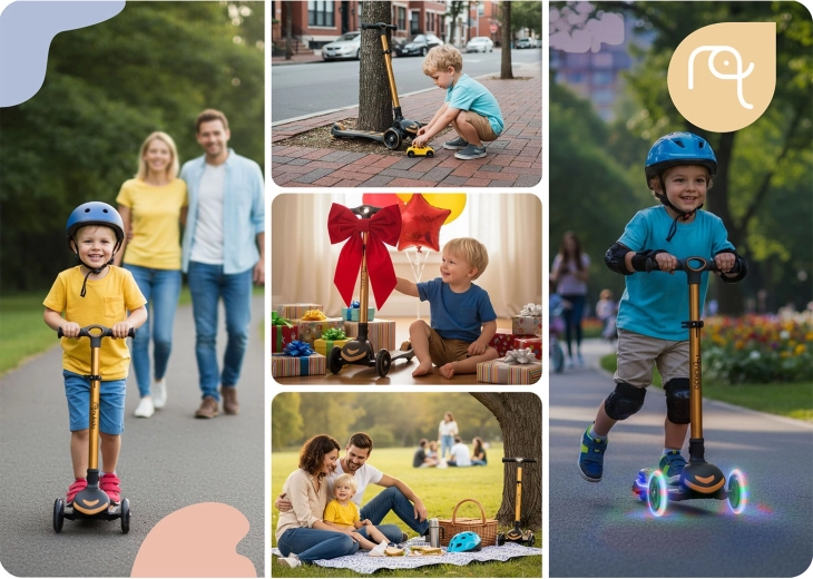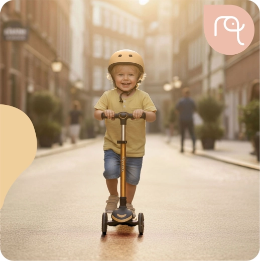 Le virage par inclinaison du corps apprend aux enfants l’équilibre naturel et assure une conduite fluide sans mouvements brusques du guidon. La paire de roues avant aide à garder la trajectoire même à basse vitesse.