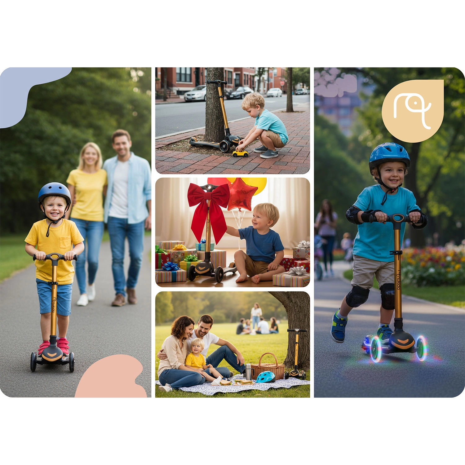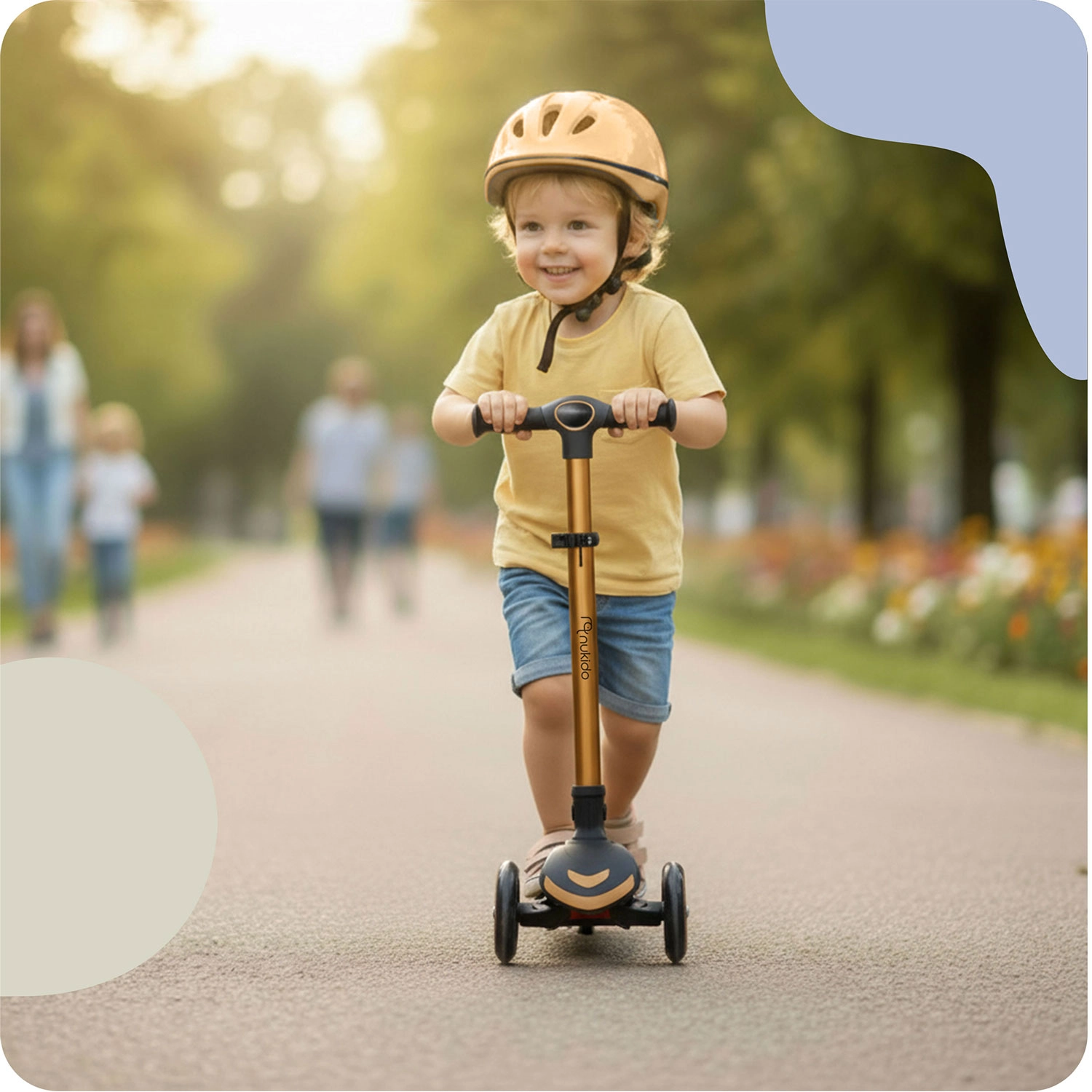 NUKIDO Flippo est une trottinette pour enfants légère et robuste conçue pour des débuts en toute sécurité. Deux grandes roues avant et une roue arrière plus petite offrent de la stabilité, tandis que le système de direction par inclinaison développe l’équilibre et la coordination. Le large repose-pied antidérapant et le frein arrière efficace aident à garder le contrôle en toute situation.