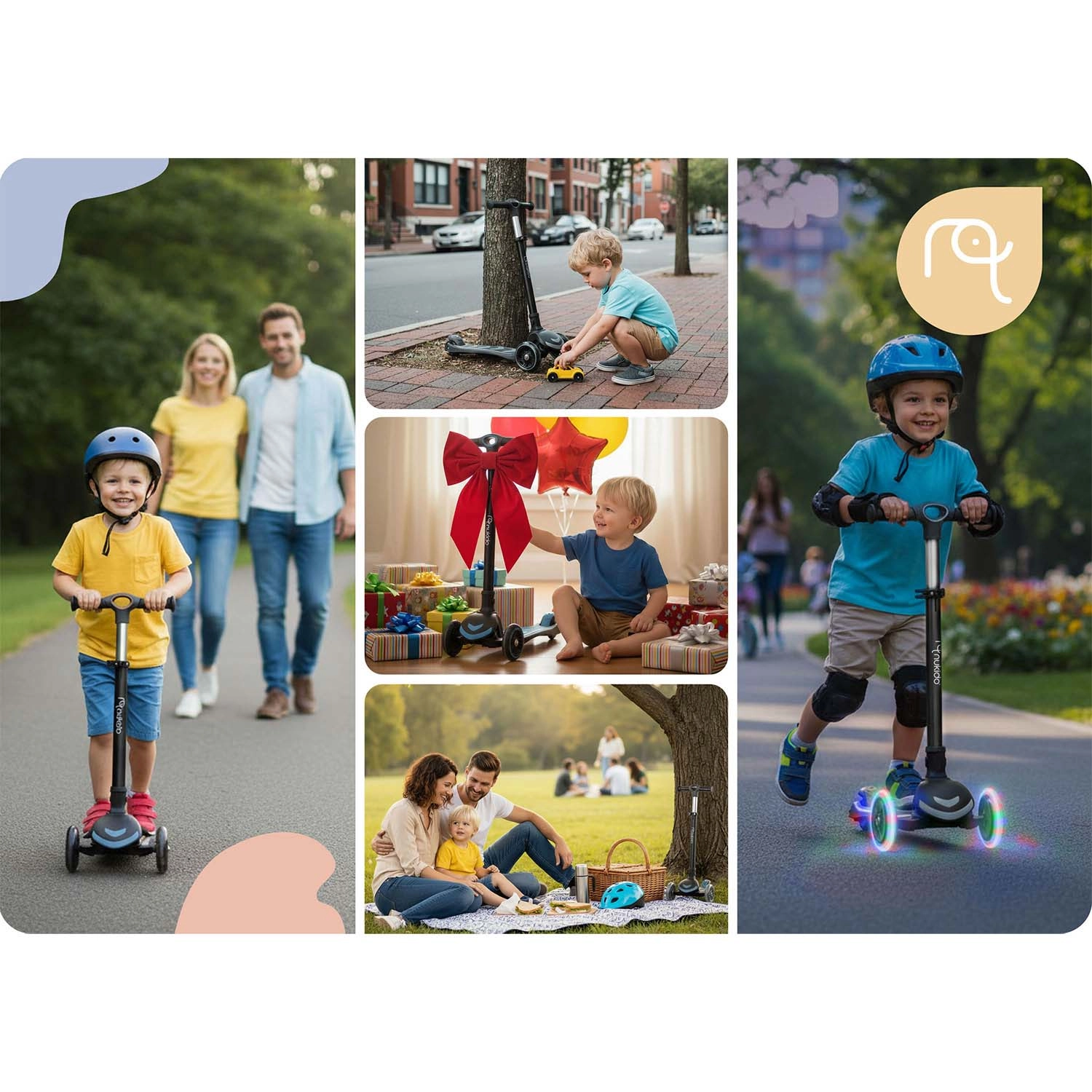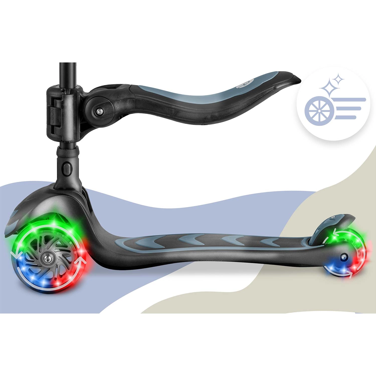 La trottinette Nukido Flippo utilise un système d’équilibre intuitif : on tourne en inclinant le corps plutôt qu’en pivotant le guidon. Les enfants acquièrent rapidement la technique de conduite tout en développant leur équilibre et leur coordination. Les trois roues assurent une excellente stabilité même à basse vitesse, ce qui en fait un excellent choix pour les débutants.