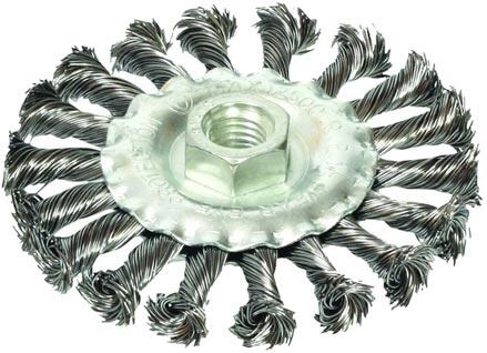 Brosse circulaire FESTA de 115 mm de diamètre avec filetage M14, conçue pour le nettoyage intensif et la préparation des surfaces. Grâce au fil breveté COPY de 0,5 mm, les brins ne se défont pas même sous charge extrême, ce qui garantit une longue durée de vie et des performances fiables. Idéale pour enlever la rouille et les anciennes peintures, nettoyer les soudures et rugosifier les surfaces.