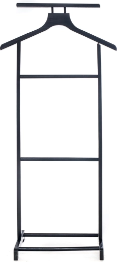 Élégant valet muet en bois au ton foncé, un assistant pratique pour déposer vos vêtements de manière ordonnée. Ses dimensions compactes 49 × 99 cm économisent de la place et son design élégant convient à la chambre, au dressing comme à l’entrée.