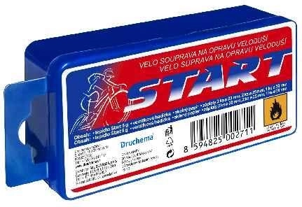Kit pratique pour une réparation rapide des crevaisons : colle pour chambre à air START 5 g et 5 rustines. La colle s’applique en fine couche sur une surface propre et légèrement poncée et sèche en environ 1 minute, pour une réparation facile et rapide à la maison comme en déplacement.