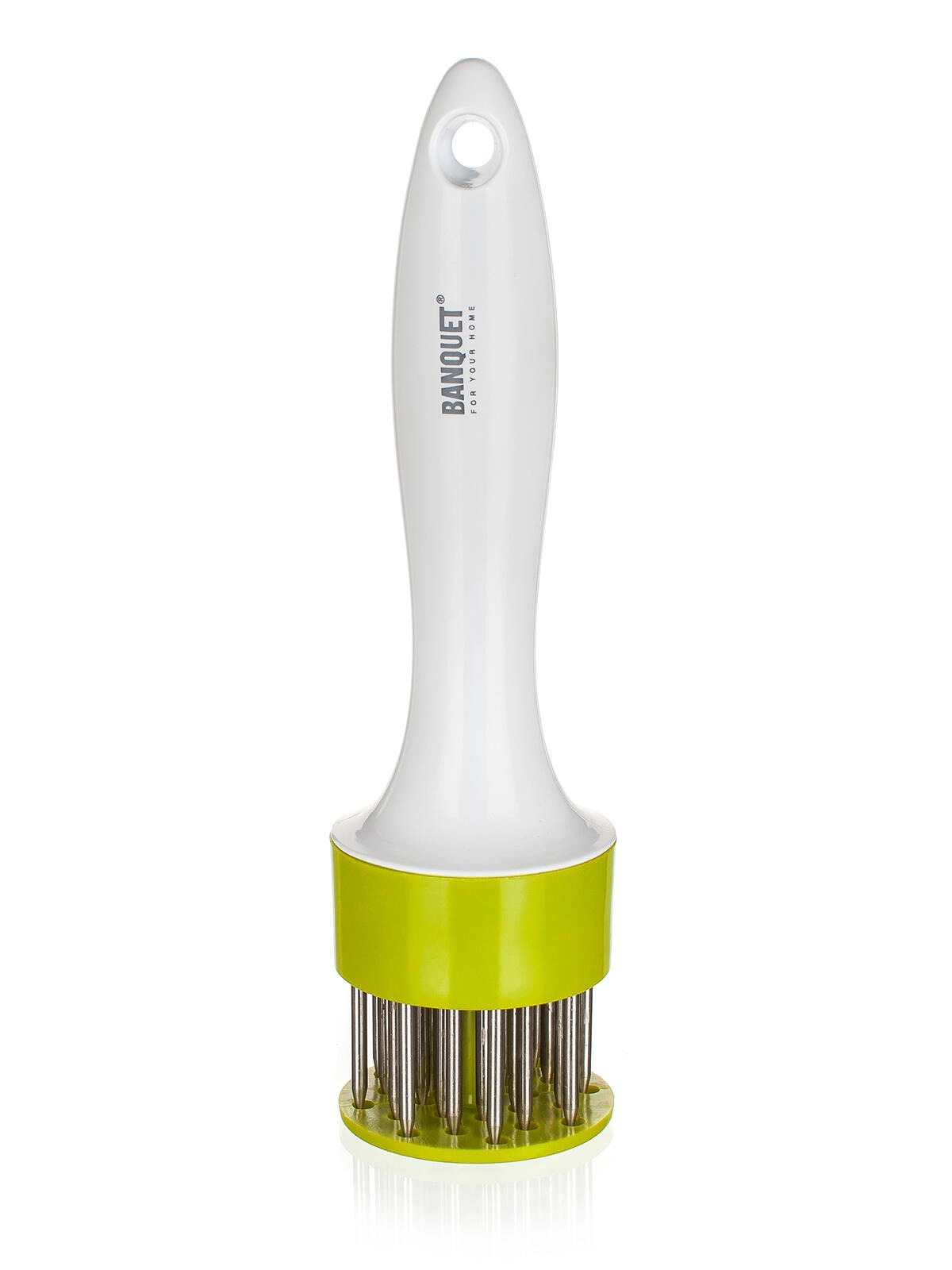 Pratique, l’attendrisseur de viande doté d’aiguilles en acier inoxydable tranchantes incise et raccourcit rapidement les fibres, rendant la viande tendre, juteuse et plus apte à absorber la marinade. Sa poignée ergonomique en plastique et sa conception compacte facilitent le travail en cuisine et raccourcissent le temps de cuisson.