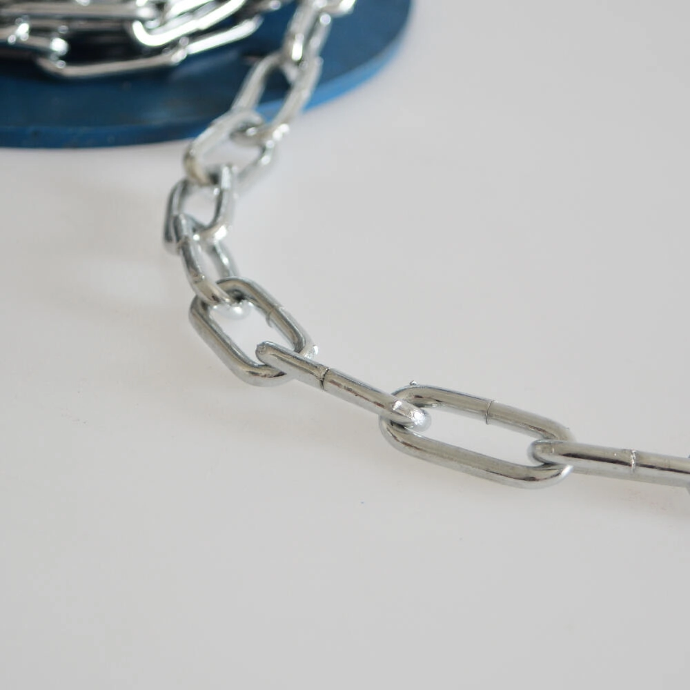 La chaîne est enroulée sur 30 mètres, ce qui facilite la manipulation et la découpe aux longueurs souhaitées. Les maillons de 32 × 8,2 mm et l’épaisseur de fil de 3,9 mm offrent un équilibre entre résistance et flexibilité pour un large éventail d’applications à la maison, à l’atelier comme dans l’industrie.