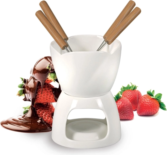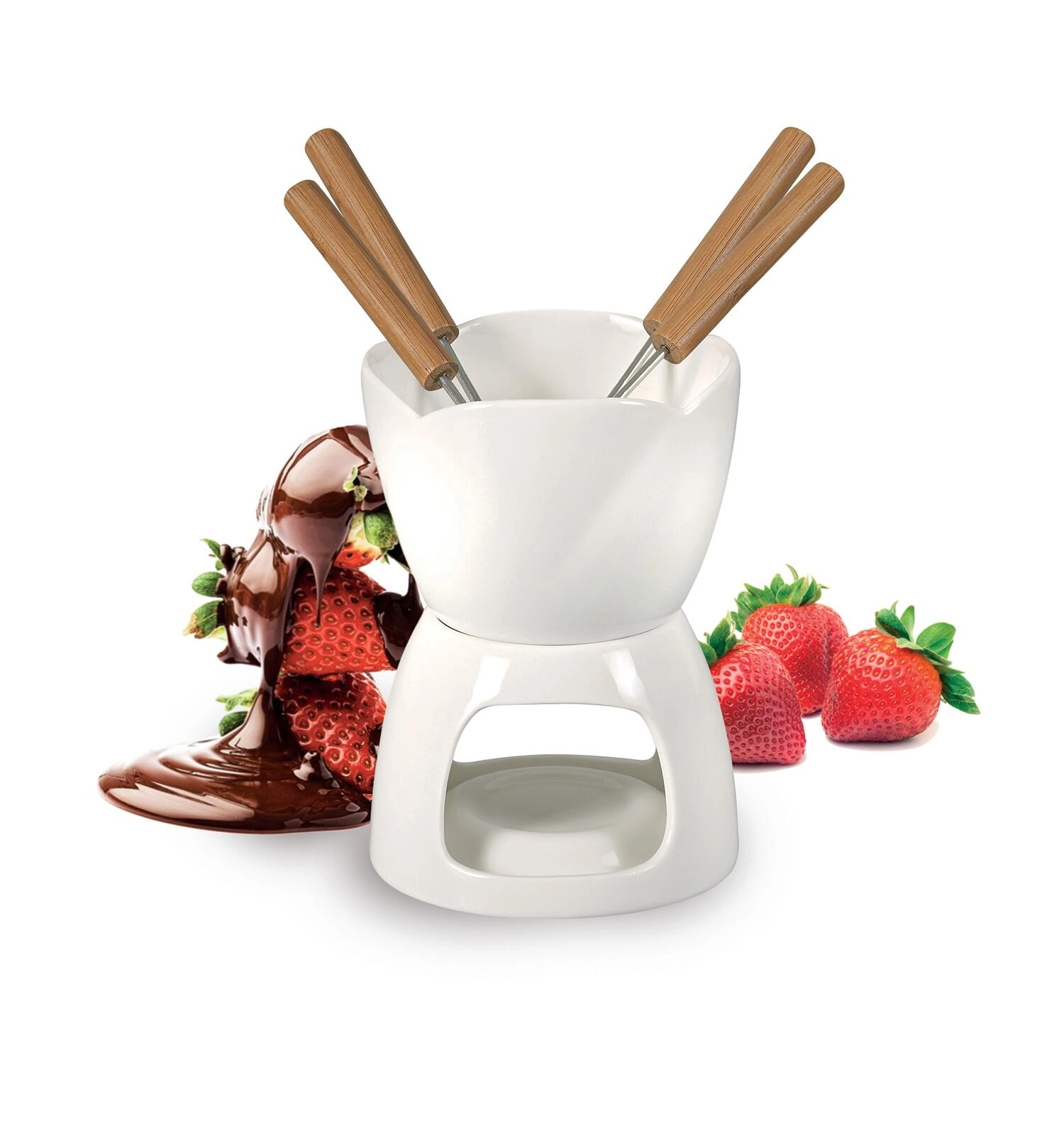 Set en céramique pour fondue au chocolat Collezione Bianca, 6 pièces