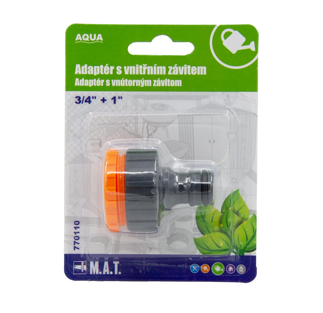 Adaptateur universel à filetage interne 3/4" et 1" de AQUA permettant un raccordement rapide et fiable d’un tuyau d’arrosage à différents robinets. Grâce à la combinaison des deux dimensions les plus courantes, il est pratique, résistant et facile à installer sans outillage spécial.
