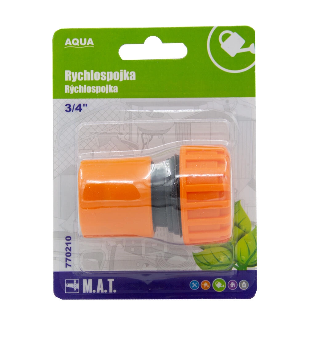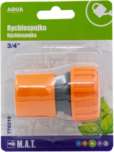 Raccord rapide universel 3/4" AQUA pour un branchement facile et rapide des tuyaux d’arrosage. Offre un étanchéité fiable, une manipulation rapide et est idéal pour l’arrosage du jardin ainsi que pour un usage domestique courant.