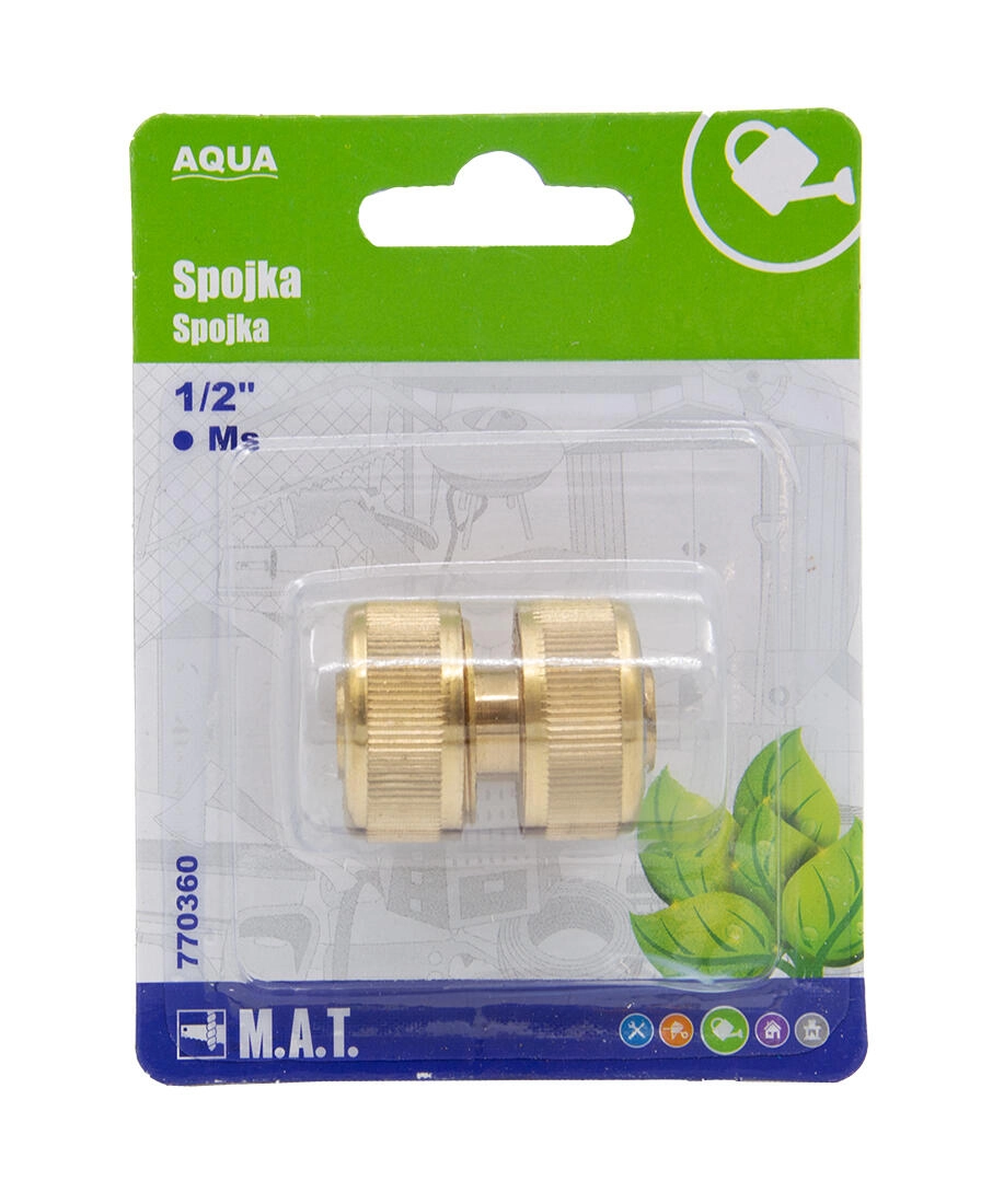 Raccord universel AQUA en laiton de haute qualité pour tuyaux d’arrosage de diamètre 1/2". Offre une résistance à la corrosion, une connexion fiable et une longue durée de vie pour une utilisation quotidienne au jardin.