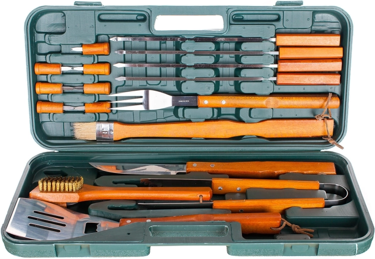 - Équipement complet pour le barbecue en un seul set – 18 pièces fonctionnelles.