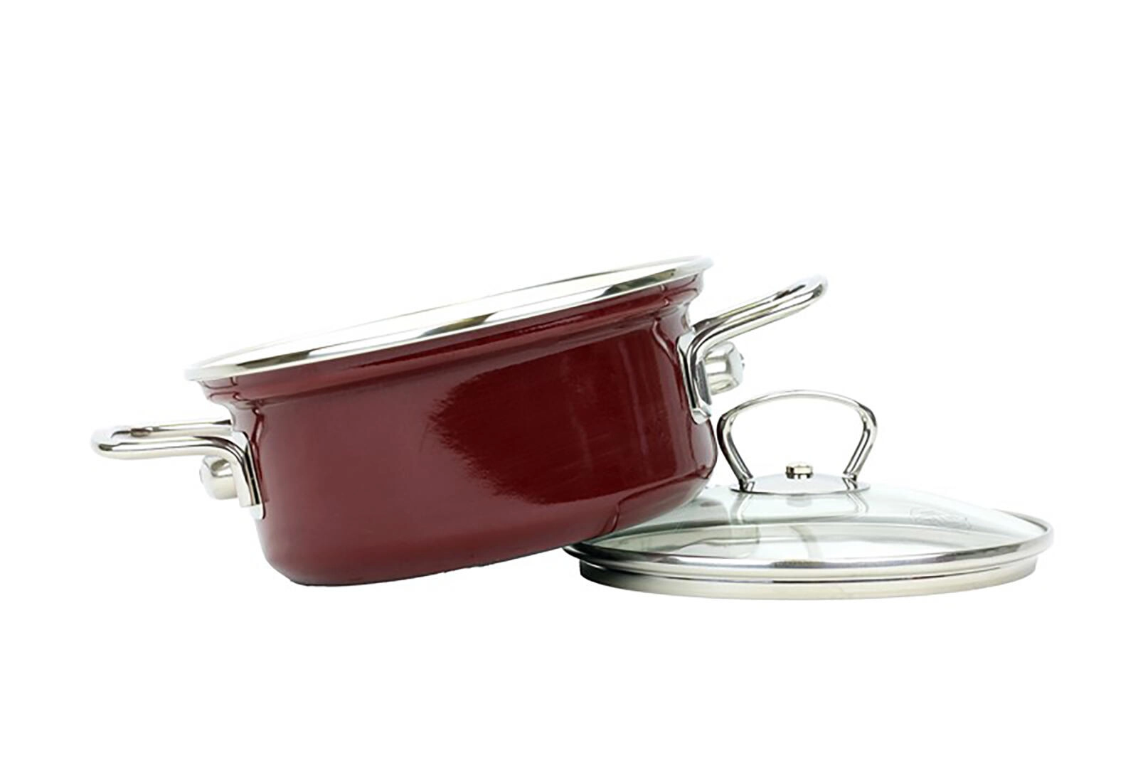 Grâce à son noyau en acier et à son émail de qualité, l’ustensile est compatible avec l’induction, le gaz, l’électricité et le vitrocéramique. Le couvercle en verre permet de contrôler la cuisson sans perte inutile de chaleur. Les poignées latérales ergonomiques assurent une manipulation sûre.