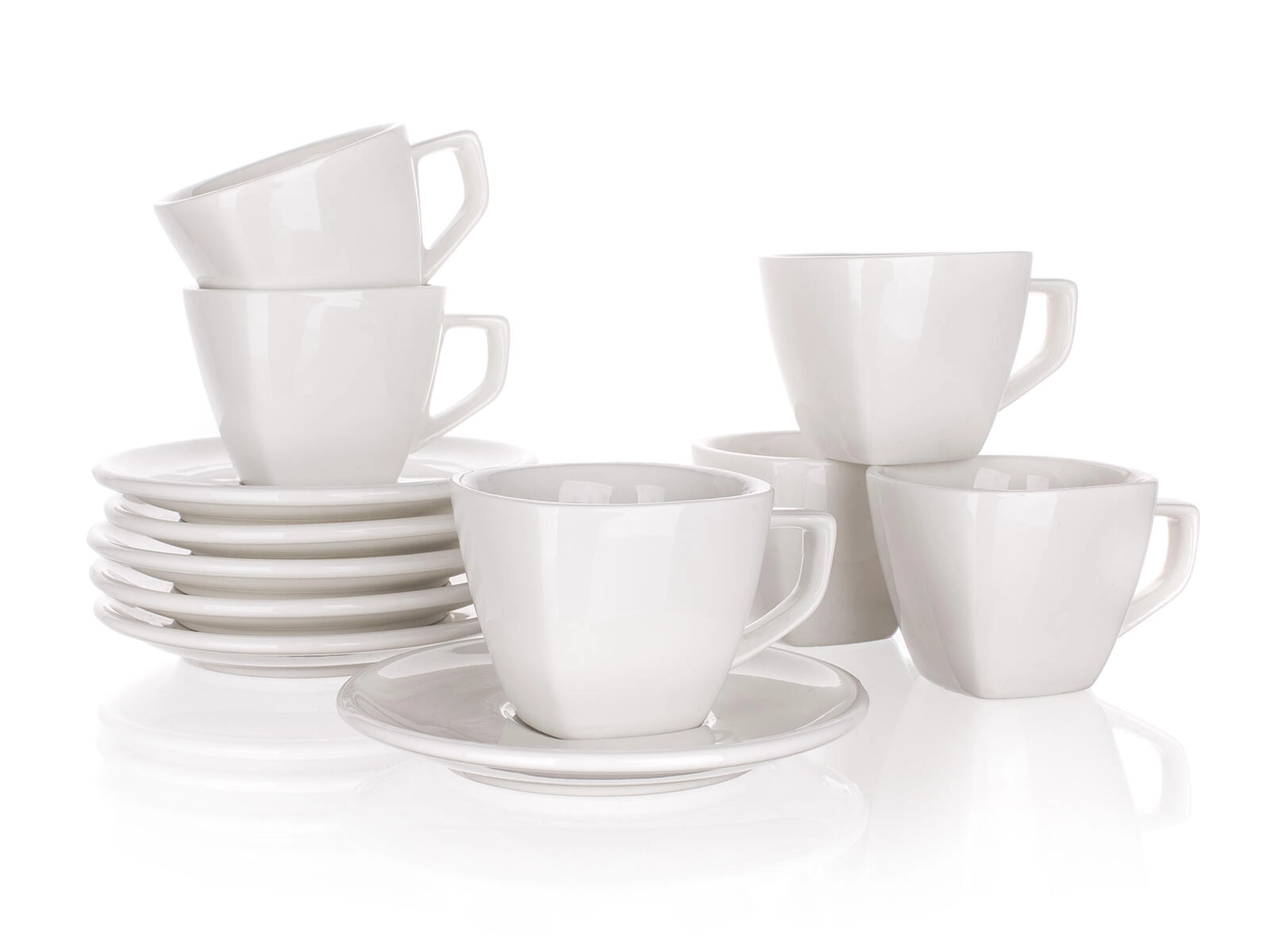 Découvrez l'ensemble intemporel tasse et soucoupe ALBA de 250 ml, alliant lignes épurées, glaçure blanche et qualité professionnelle. Les éléments angulaires apportent une touche moderne tout en garantissant une prise en main stable et confortable. Idéal pour servir café, thé ou chocolat chaud.