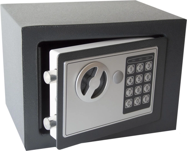 Pratique, ce coffre-fort numérique à structure en acier est idéal pour conserver documents, bijoux, espèces et autres objets de valeur. Ses dimensions compactes 230 × 170 × 170 mm permettent une intégration discrète dans une armoire, un tiroir ou sur une étagère, ainsi qu’un ancrage fixe pour une sécurité accrue.