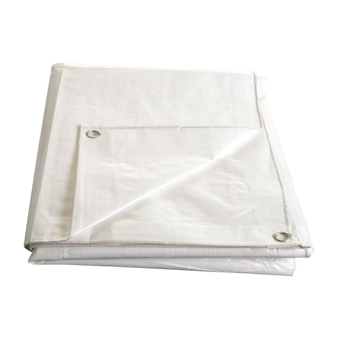 Bâche blanche universelle avec œillets, dimensions 3 × 4 m et grammage 140 g/m², protège fiablement les matériaux contre les intempéries. Grâce aux œillets métalliques tous les 1 mètre, elle se fixe facilement et solidement. Idéale pour couvrir les matériaux de construction, le bois ou le matériel de jardin.