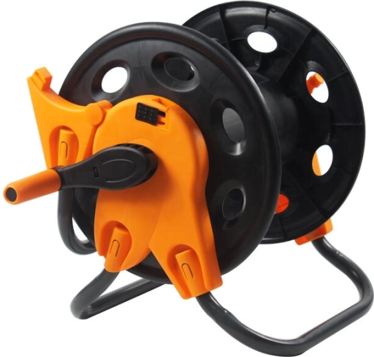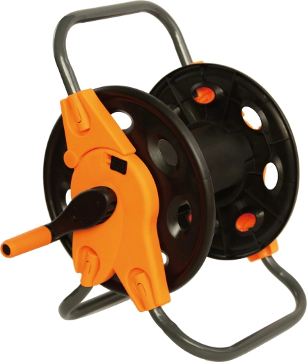 Enrouleur manuel pratique AQUA pour un rangement ordonné et une manipulation aisée du tuyau de jardin. Permet d’enrouler jusqu’à 45 m de tuyau 1/2" ou jusqu’à 20 m de tuyau 3/4" (avec raccord rapide 3/4" en option). Structure résistante et format compact pour un rangement net sans torsions ni nœuds. Tuyau non inclus.