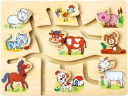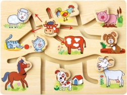 Découvrez le charme de ce puzzle en bois sur le thème de la ferme domestique, conçu pour encourager le développement de l'enfant. Le labyrinthe est conçu pour améliorer de manière ludique et interactive la motricité fine et la coordination œil-main. Les enfants apprennent non seulement à reconnaître les différents animaux mais exercent aussi leur orientation spatiale et leur pensée logique.
