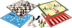Coffret universel de jeux de société pour toute la famille. La boîte contient jusqu’à 100 variantes de jeux classiques comme la Dame, le Moulin, le Parcours et bien d’autres jeux de dés et de stratégie. Un riche assortiment d’accessoires en matériaux de qualité, sans danger pour la santé, et 4 plateaux de jeu différents garantissent une diversité de divertissement ainsi que l’entraînement de la logique, de la mémoire et de l’observation.