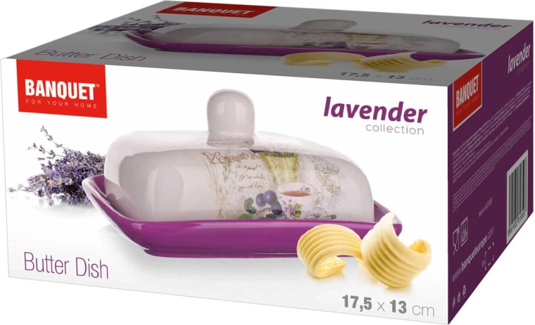 Le beurrier en céramique Lavender est idéal pour le quotidien comme pour les grandes occasions. L’émail de qualité, associant les tons violets et blancs, protège la surface, facilite le nettoyage et met en valeur le décor romantique de lavande.