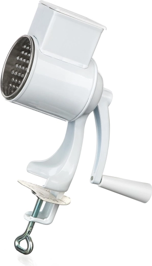 Traditionnel moulin manuel à chapelure avec un corps métallique robuste et un tambour en tôle étamée pour râper rapidement et uniformément pains, fromages ou noix. Grâce à sa fixation à vis pratique sur la table, le travail est stable et sûr. Finition de qualité, peinture époxy blanche et fabrication soignée en République tchèque font de ce moulin un allié fiable pour chaque cuisine.