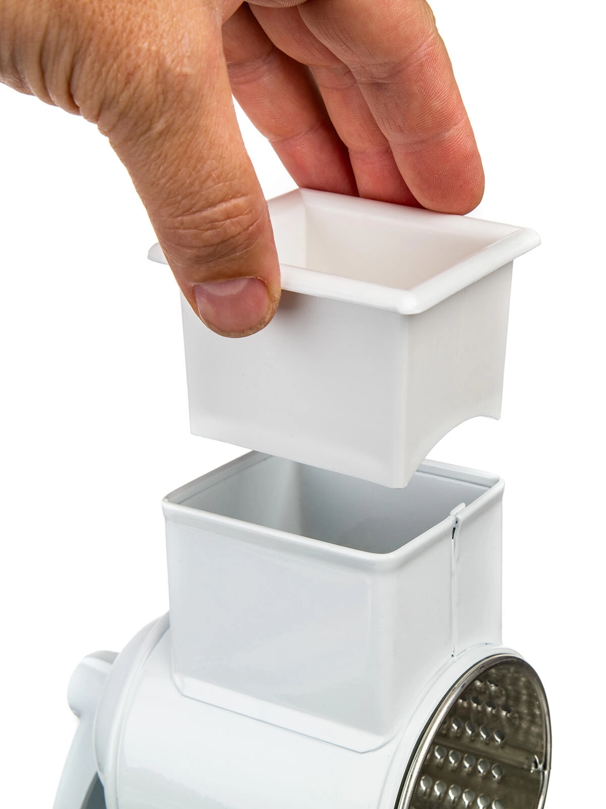 Un tambour de qualité en tôle étamée de 7,5 cm de diamètre assure un râpage homogène et une longue durée de vie même en usage fréquent.