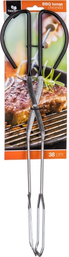 Pince de barbecue pratiques de 38 cm en chrome de haute qualité pour une manipulation aisée des aliments sur le gril. Grâce au manche plus long, elles assurent un éloignement sûr de la chaleur, sont résistantes et faciles à entretenir.