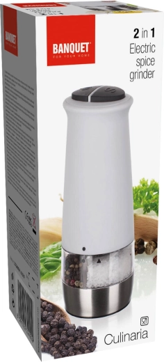 Le moulin électrique à épices 2‑en‑1 CULINARIA White réunit sel et poivre dans un appareil compact. Son mécanisme de broyage en céramique assure des résultats homogènes, ne modifie pas le goût des épices et offre une grande résistance à l’usure. Son design blanc moderne s’intègre facilement à toute cuisine.