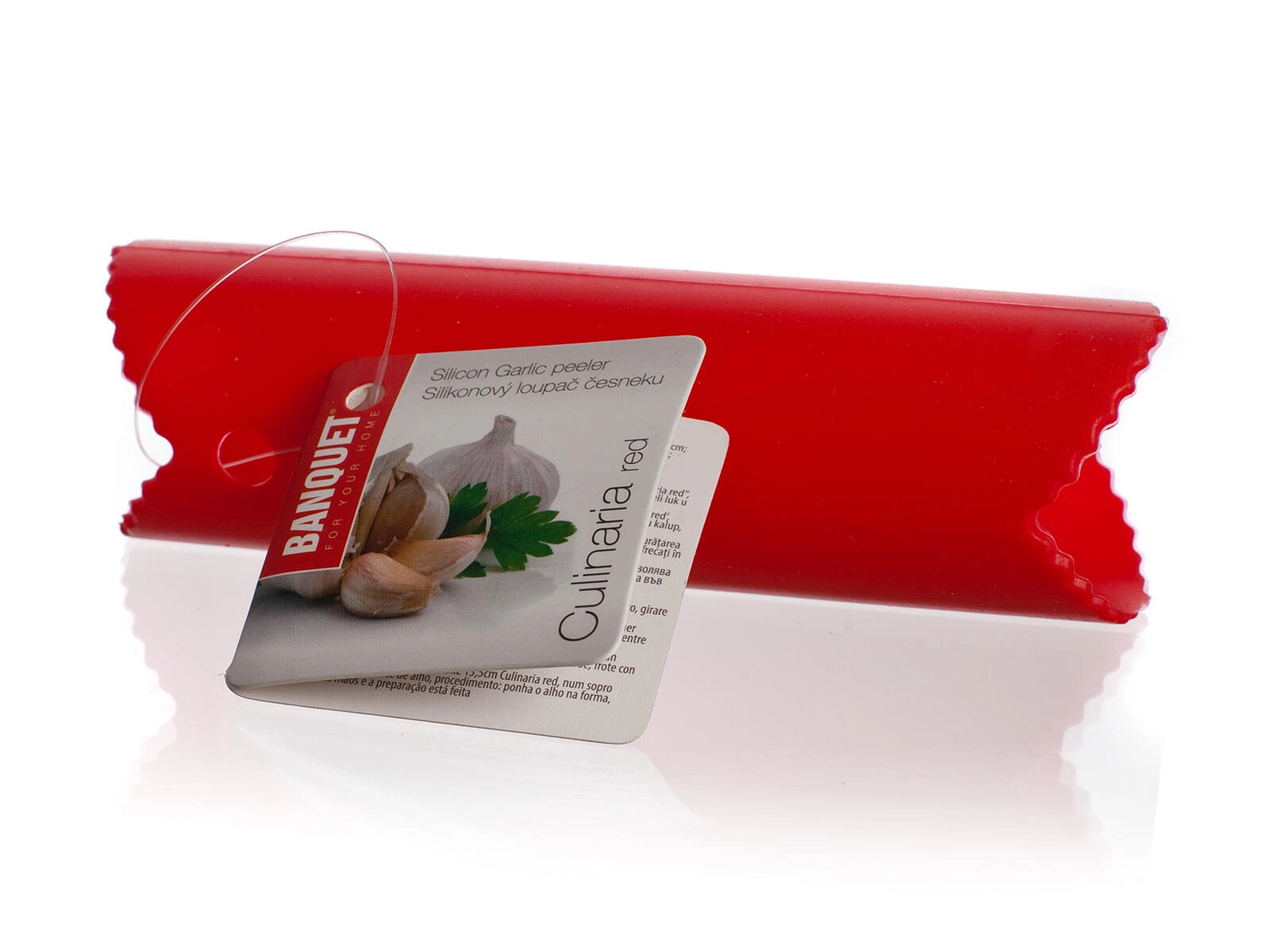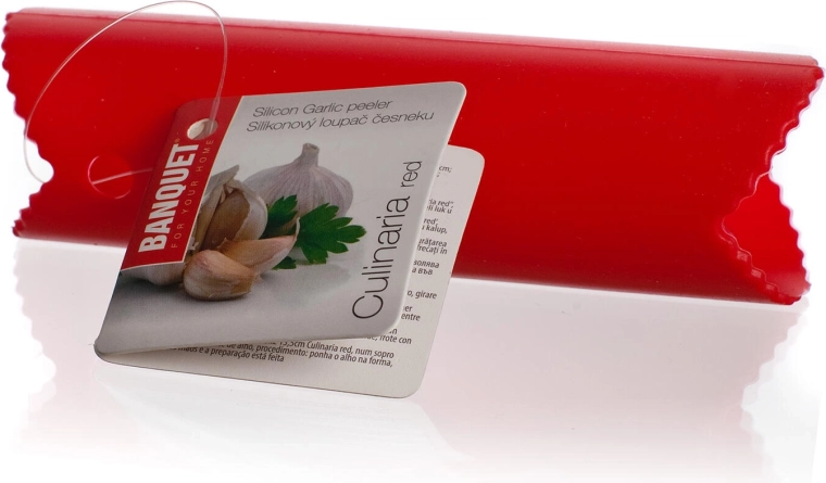 Pratique épluche-ail en silicone CULINARIA rouge de 13,5 cm de longueur et 3,5 cm de diamètre, il vous aide à éplucher l’ail en quelques secondes. Il suffit d’un léger roulage et les gousses sont prêtes à être utilisées – rapidement, proprement et sans odeur sur les doigts.