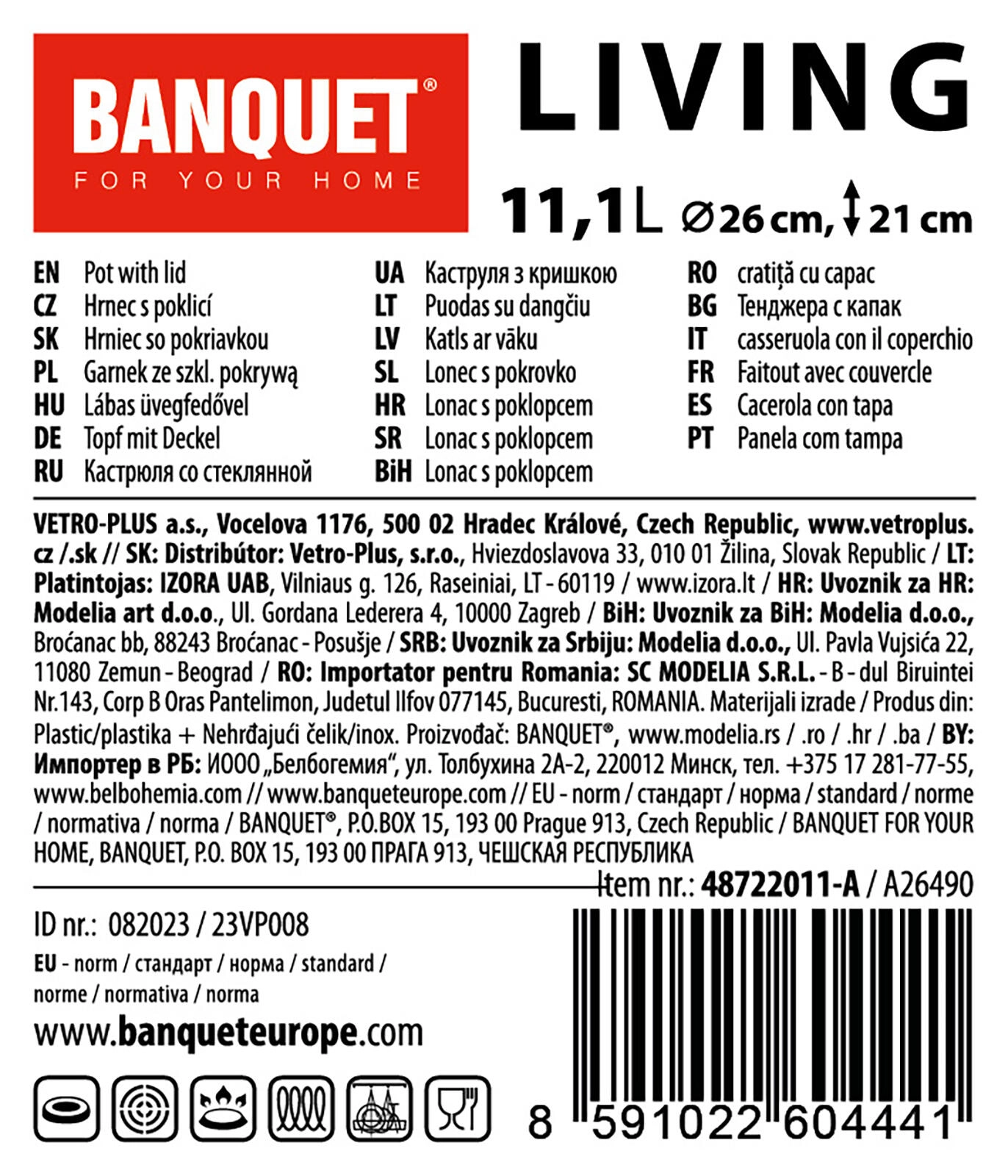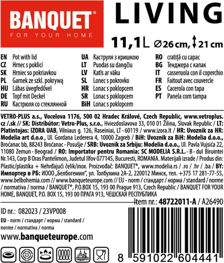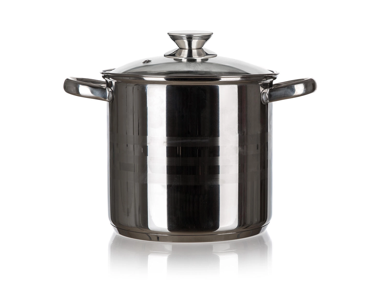 Faitout LIVING pratique et durable de 11,1 l avec couvercle en verre, idéal pour cuisiner des soupes, des sauces et de plus grandes portions. Il offre une conception de qualité en acier inoxydable, une utilisation universelle sur tous les types de plaques, y compris l’induction et des poignées en inox confortables. La surface brillante avec des bandes mates élégantes apporte un look moderne à votre cuisine.