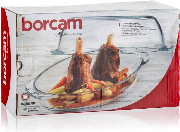Plat à rôtir ovale universel en verre avec couvercle d’un volume total de 4,6 l, idéal pour la cuisson des viandes, des gratins et des desserts. Fabriqué en verre borosilicaté, il est hautement résistant aux températures de -50 à 500 °C, hygiénique et facile à entretenir – compatible lave-vaisselle. Grâce au couvercle, vous obtenez un récipient supplémentaire et la possibilité d’une cuisson saine sans graisse superflue.