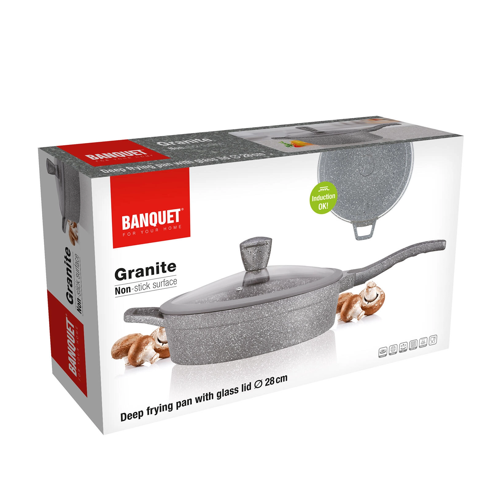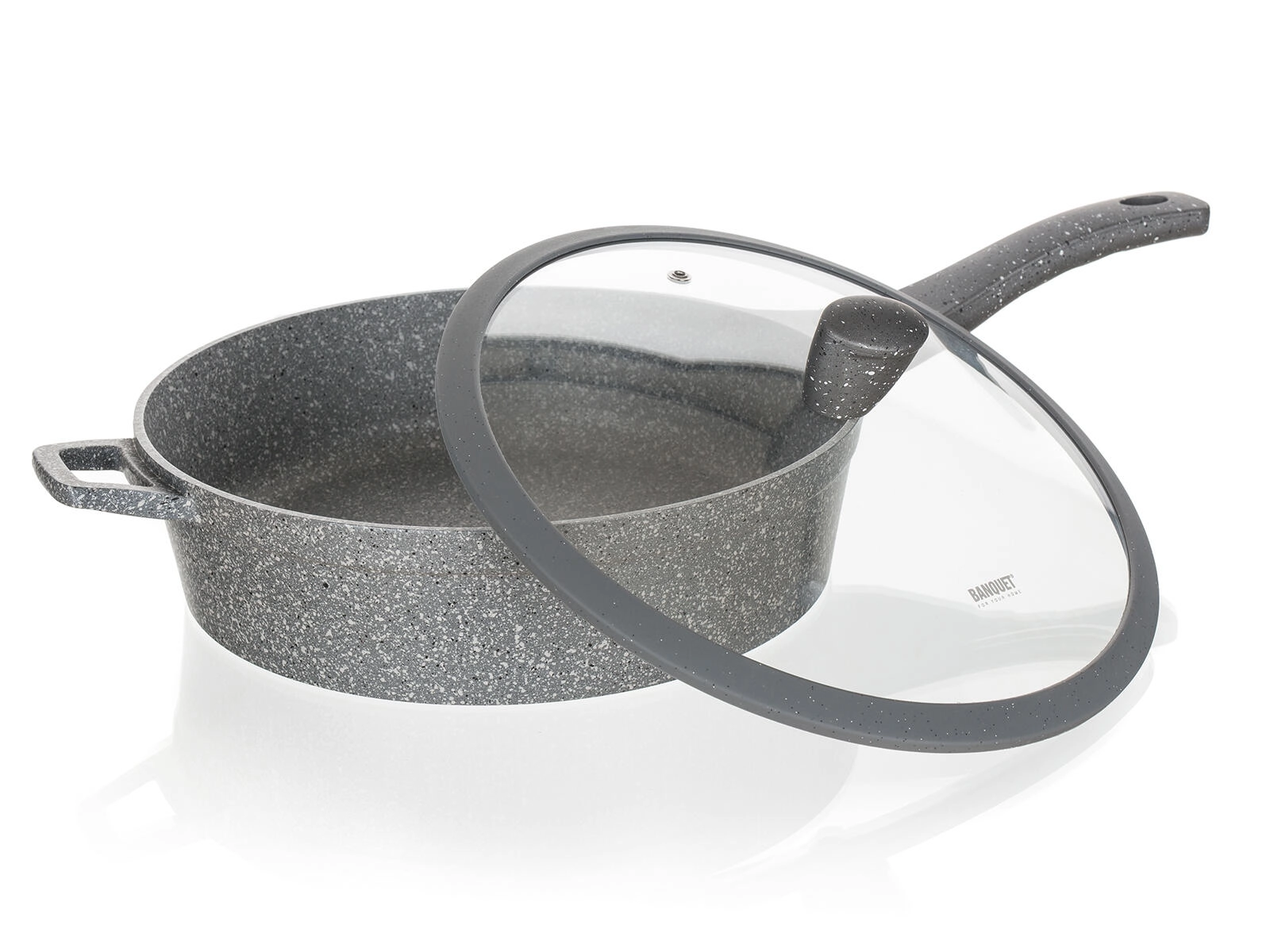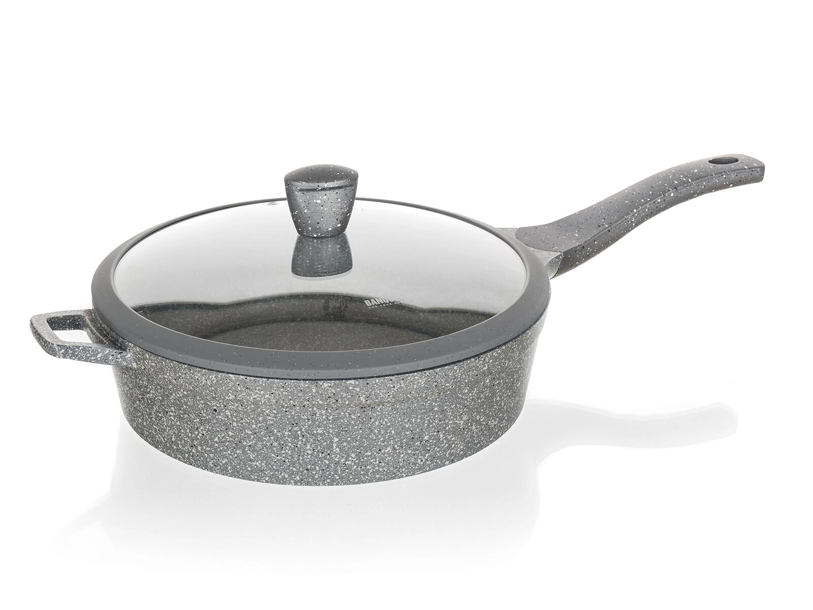 Poêle profonde 28 cm avec revêtement antiadhésif Granite Grey et couvercle en verre