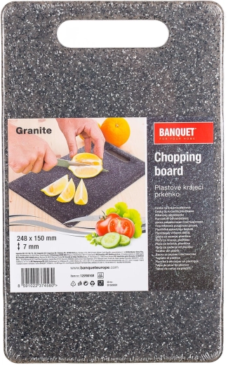 La pratique planche à découper en plastique GRANITE dans une élégante couleur grise est un choix idéal pour préparer fruits, légumes, viande et pains. Légère, fine et en même temps résistante – l’accessoire parfait pour la découpe au quotidien.