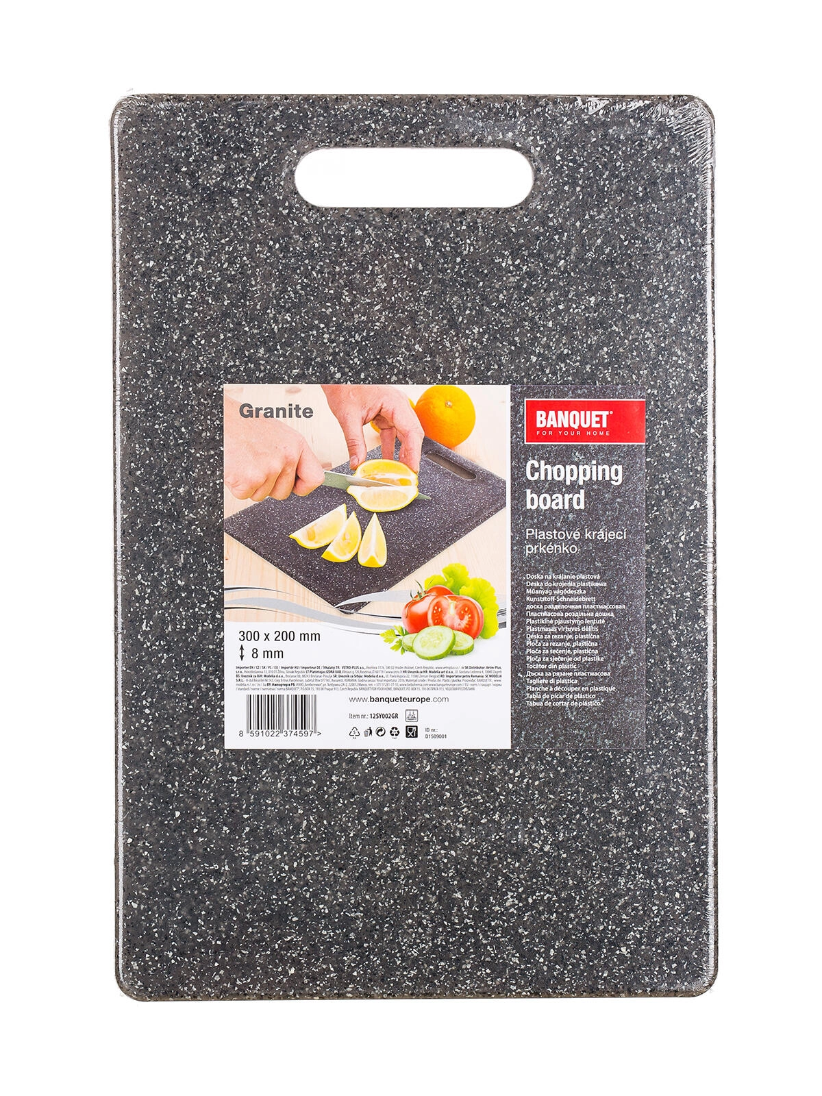 Profitez d’une découpe confortable sur une planche solide et légère au look granit moderne. Grâce à l’ouverture pratique, la planche se transporte ou se suspend facilement, tandis que son profil fin permet d’économiser de la place au rangement.