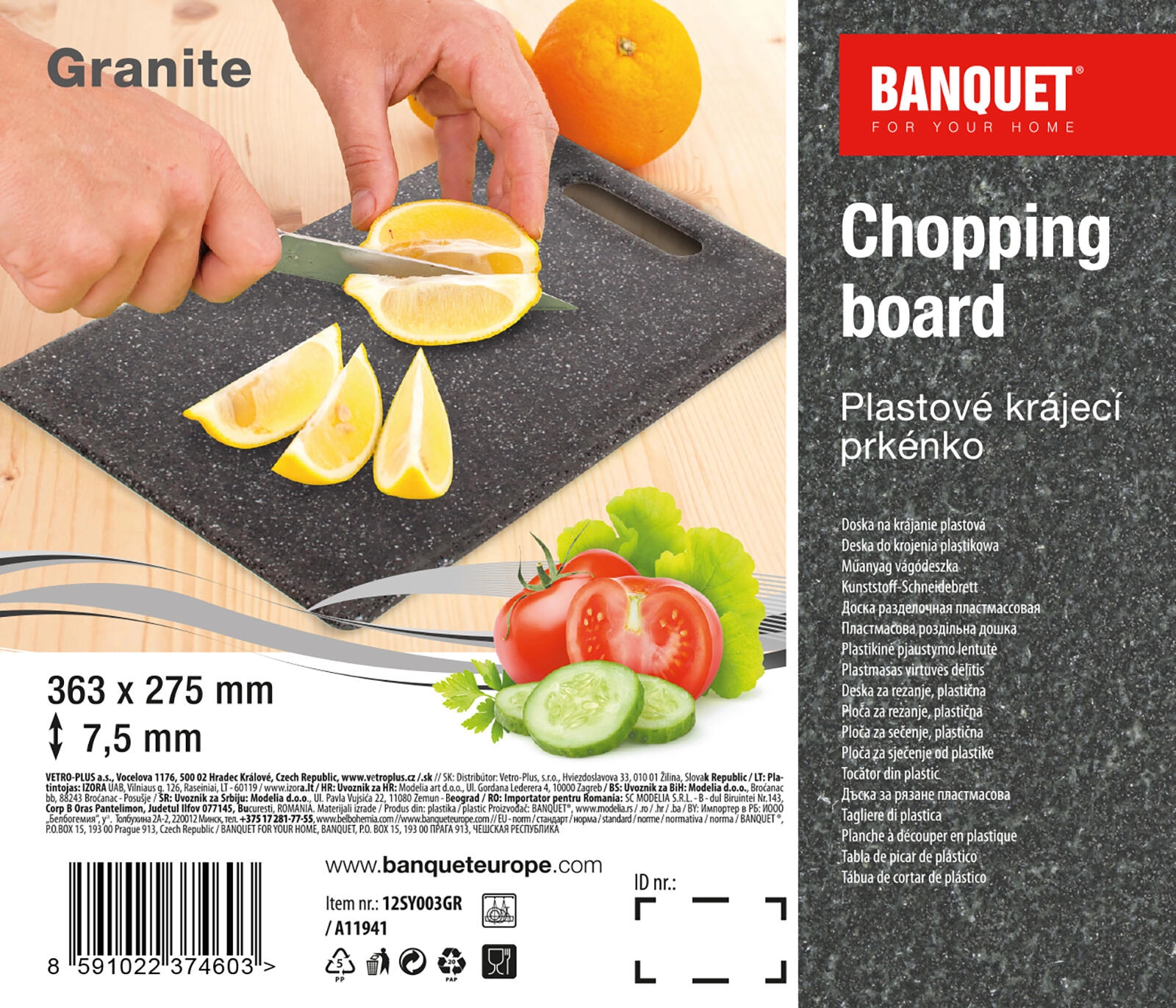 Vous cherchez une planche à découper fiable pour la cuisine ? La planche en plastique GRANITE est fabriquée en polypropylène de qualité, garantissant une longue durée de vie, un entretien aisé et une utilisation hygiénique. Elle préserve le fil des lames et convient parfaitement à la découpe quotidienne de la viande, des légumes et du pain.