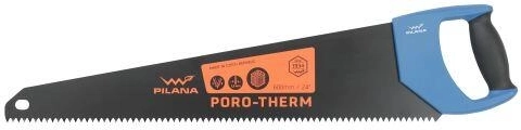 Scie professionnelle pour briques creuses PILANA de 600 mm pour des coupes rapides et précises dans des matériaux tels que POROTHERM, HELUZ ou TONDACH. Elle offre des dents trempées 64 HRC pour une longue durée de vie et une coupe nette, ainsi qu’une poignée ergonomique en plastique et caoutchouc souple pour une prise en main confortable et sûre.