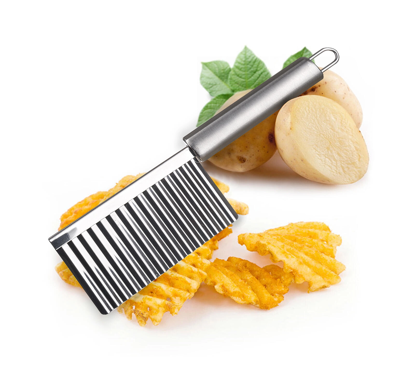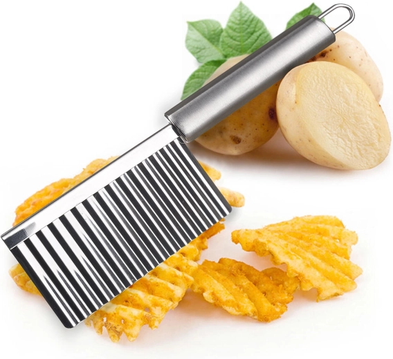 Le tranchant cranté crée des ondulations régulières sur les pommes de terre, les légumes et les fromages – idéal pour les frites et les tranches décoratives.