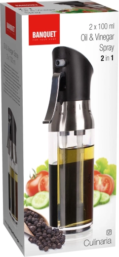 Découvrez une solution astucieuse pour l’assaisonnement : le pulvérisateur huile et vinaigre CULINARIA avec deux compartiments séparés (2×100 ml) dans une seule bouteille. Il permet de pulvériser ou de doser rapidement et hygiéniquement l’huile et le vinaigre séparément, avec un contrôle parfait. Le corps transparent facilite le suivi des quantités et des proportions, tandis que l’anneau en inox apporte une touche élégante.