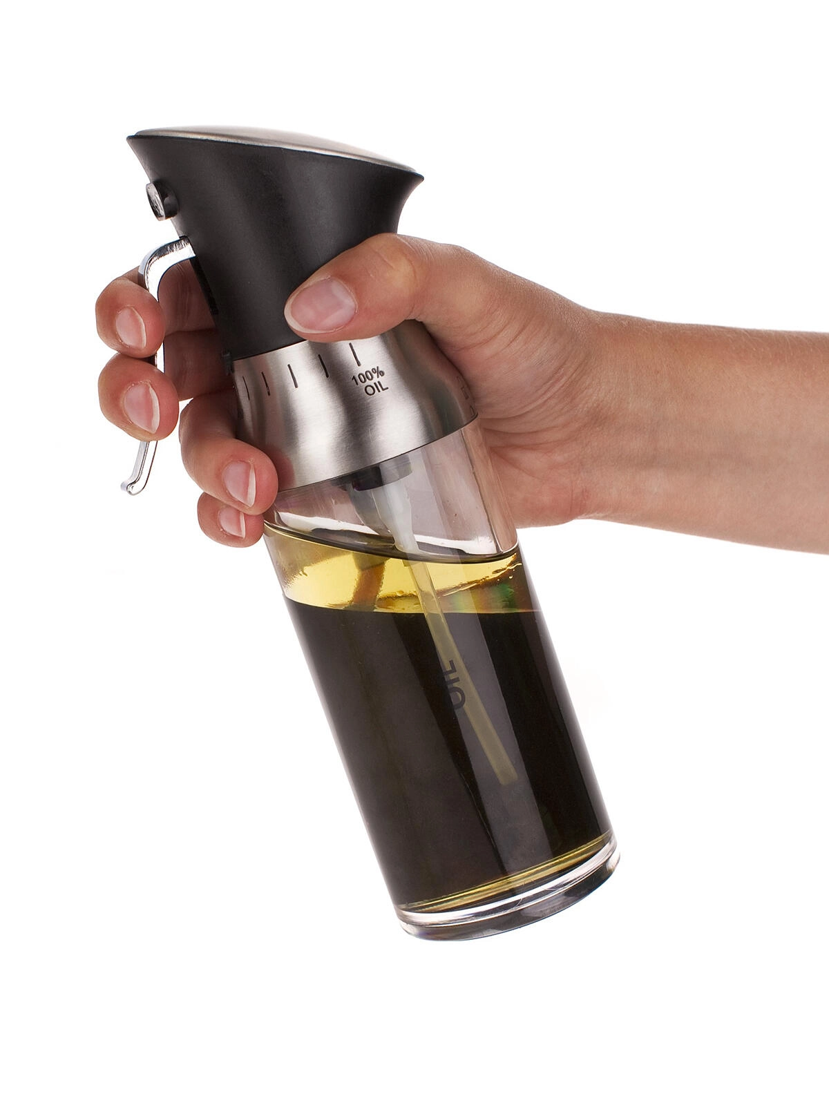 Idéal pour les salades, les pâtes, la pâtisserie et le barbecue – de la fine touche d’assaisonnement à l’enduction uniforme. La gâchette intuitive garantit une application précise sans débordement ni gouttes. Grâce à ses dimensions compactes (hauteur 20,4 cm, diamètre de base 5,5 cm), il tient confortablement en main et se range facilement.