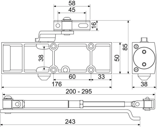 Les utilisateurs apprécieront la vitesse de fermeture et l’à-coup final réglables, garantissant un fonctionnement silencieux et sûr sans chocs brusques. Le ferme-porte permet un angle d’ouverture maximal de 180° et convient aux portes d’un poids de 30–65 kg et d’une largeur jusqu’à 950 mm. Le montage est flexible — sur l’ouvrant de porte ou sur l’huisserie — et permet une mise en service rapide.
