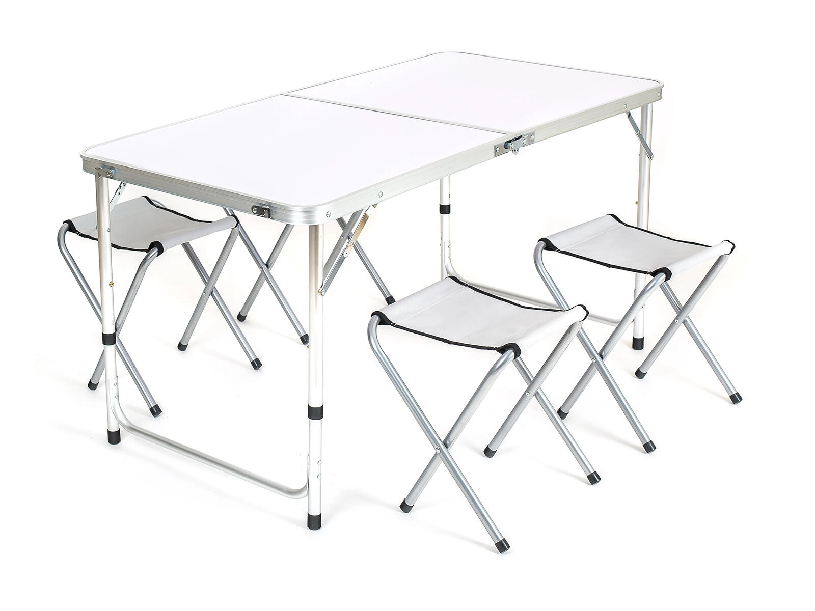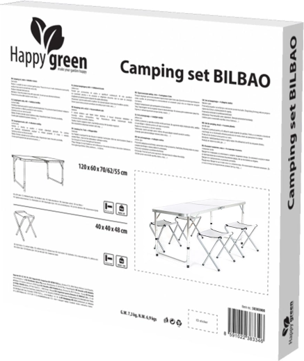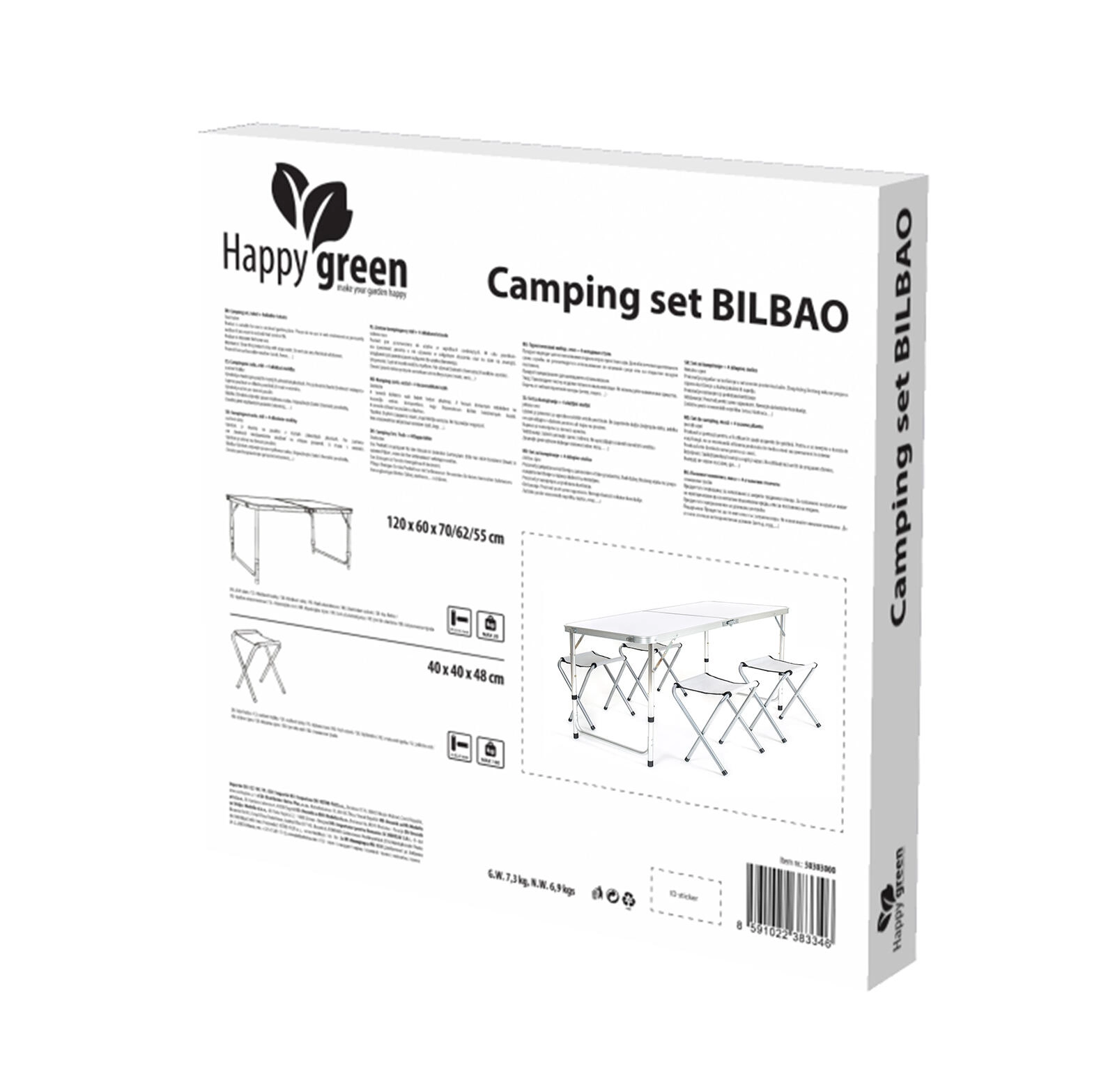 Le set BILBAO est un choix idéal pour le camping, les voyages et les barbecues du week-end. La table en aluminium de 120 × 60 cm offre suffisamment d’espace pour les repas et les jeux, tandis que quatre tabourets pliants en acier avec une capacité de charge de 100 kg assurent une assise fiable. Grâce aux pieds télescopiques réglables, vous adaptez facilement la hauteur de la table à 70 / 62 / 55 cm.
